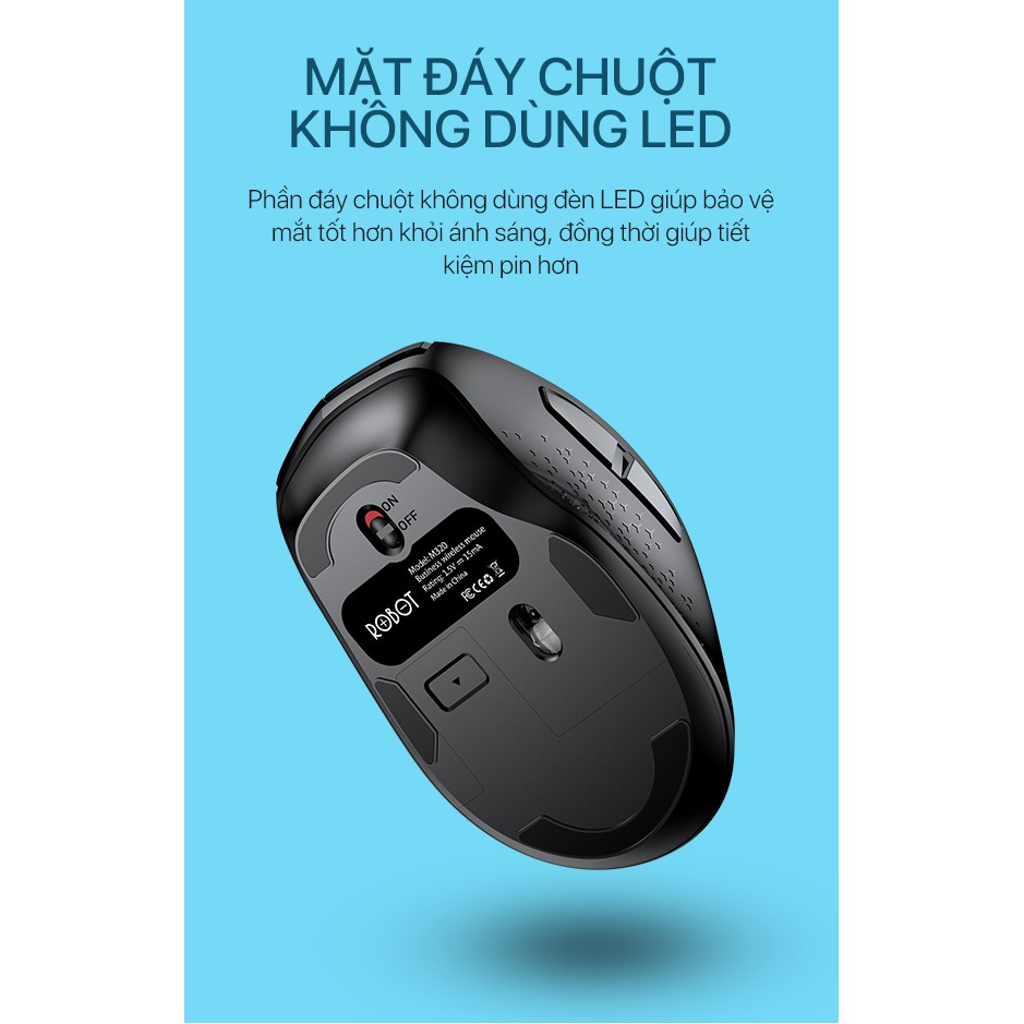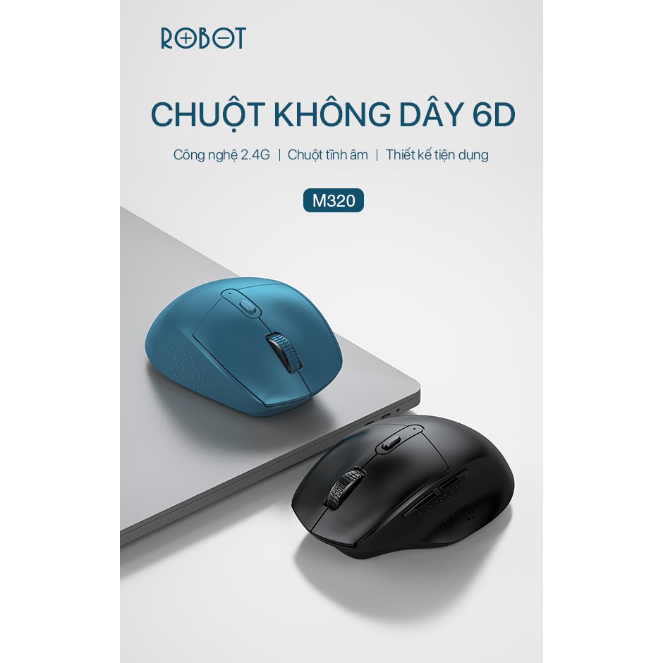Chuột Không Dây 2.4G 6D ROBOT M320 Chuột Tĩnh Âm - Tặng Kèm Pin - BẢO HÀNH 12 THÁNGModel: M320