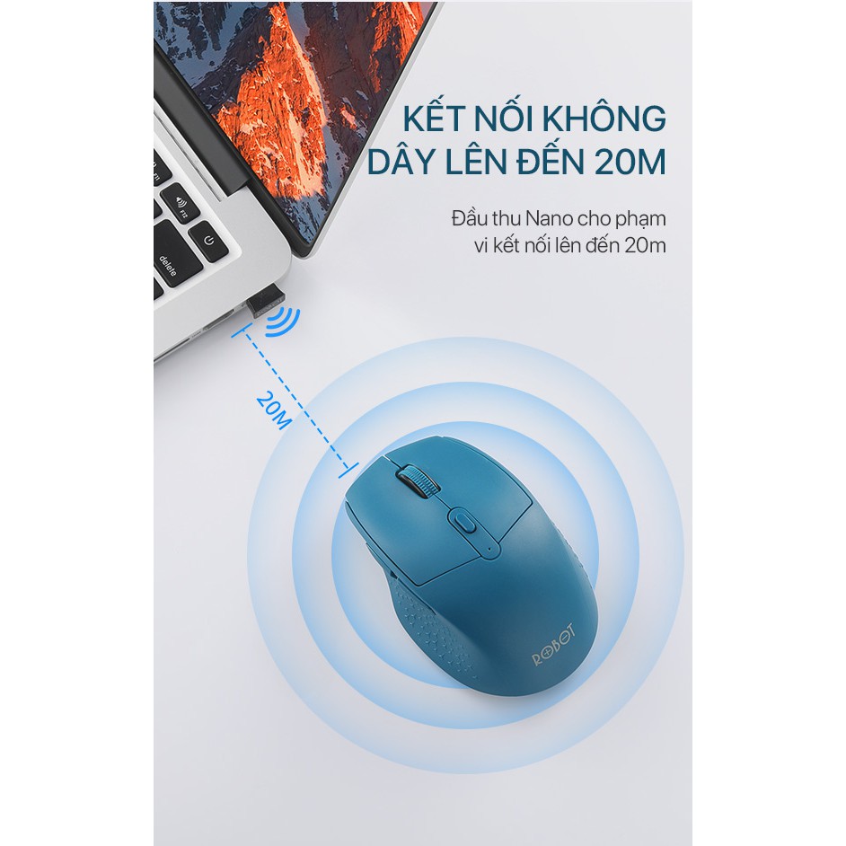 [Kèm Pin] Chuột Không Dây ROBOT M320 2.4GHz chuột tỉnh âm click không nghe tiếng khoảng cách tín hiệu 20m -Chính Hãng
