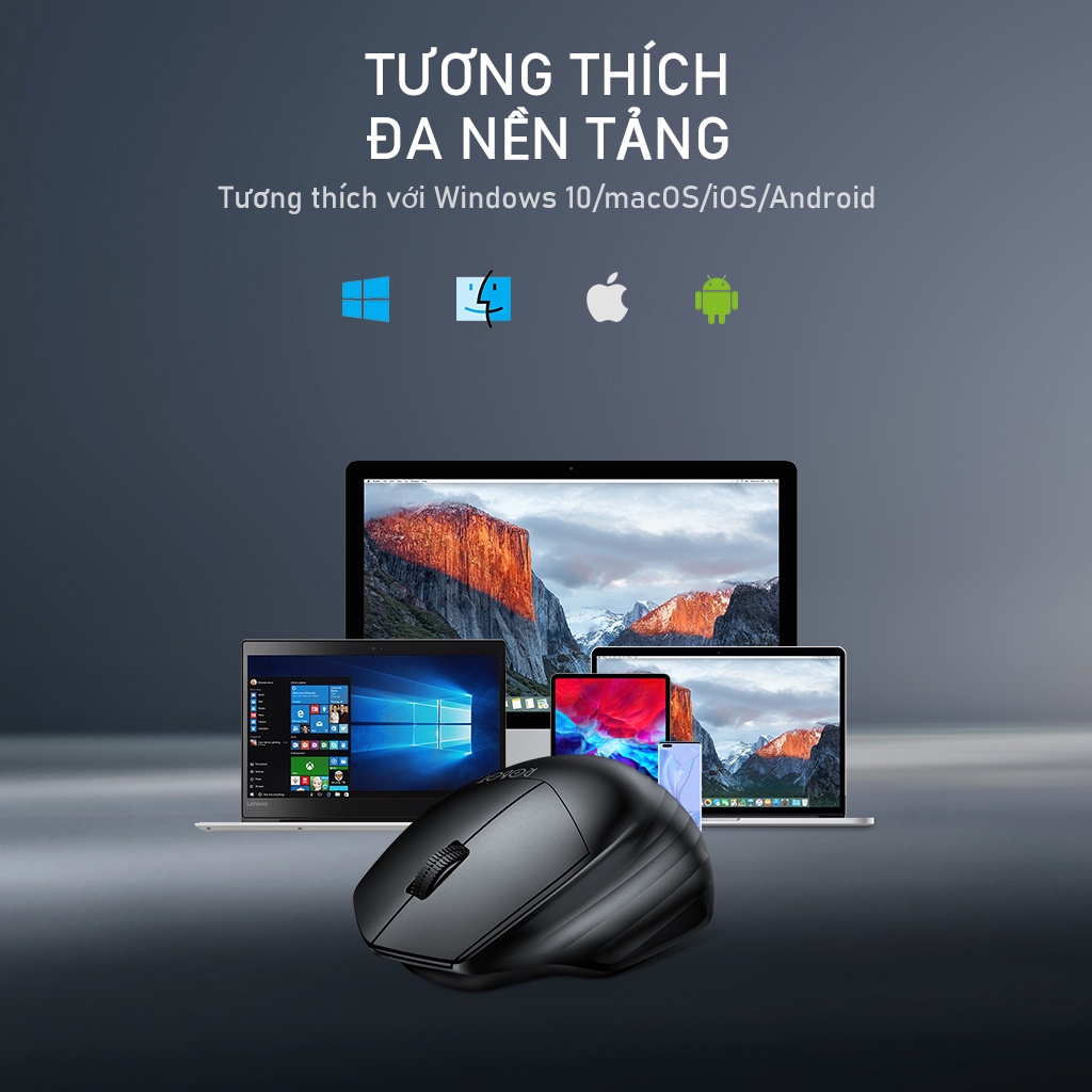 - Chuột có 2 hình thức kết nối thông qua Bluetooth 5.0/3.0 hoặc kết nối bằng đầu thu USB Nano 2.4 GHz.