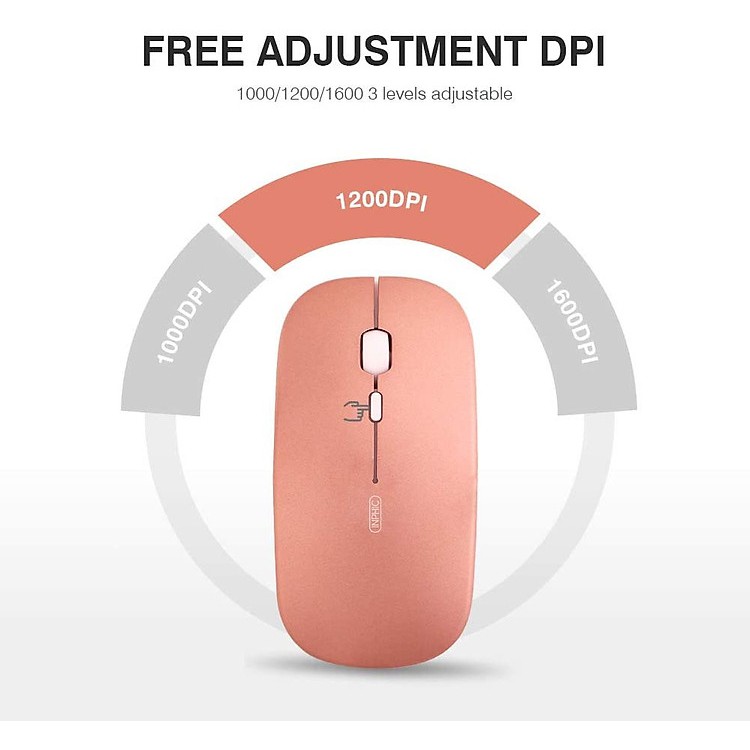 * Chuột USB 2.4GHz: Kết nối ổn định trong khoảng cách làm việc lên đến 10 mét và chỉ cần lắp nano USB vào. Ba DPI có thể điều chỉnh (1000/1200/1600) để tự do kiểm soát tốc độ chuột.