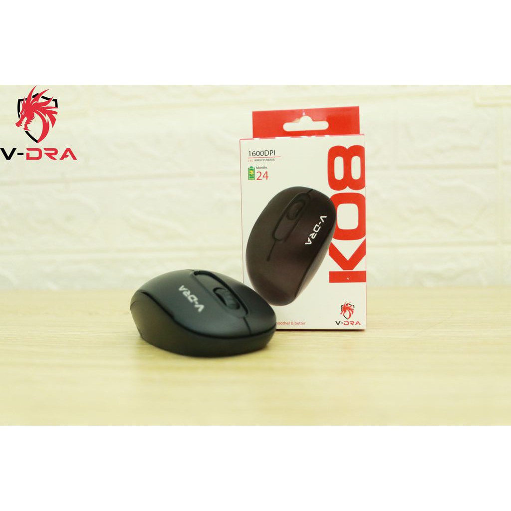 - V-DRA K08 là dòng wireless mouse chuẩn 2.4G chuyên dụng cho máy tính, laptop và Android box.