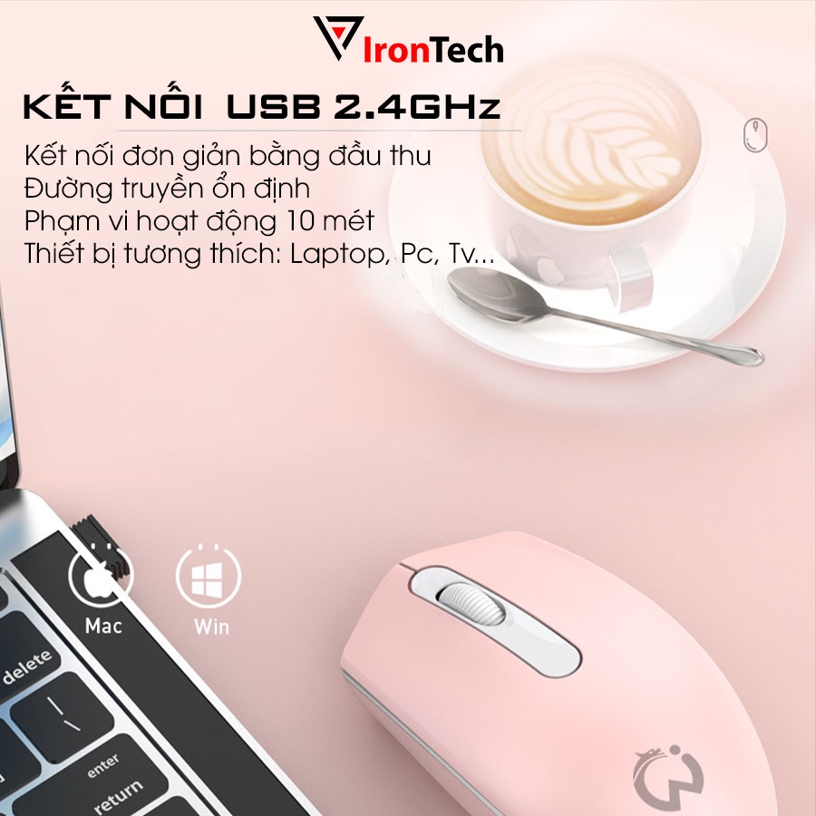 Chuột không dây wireless 2.4G và bluetooth IronTech Cops M2 chuột máy tính chống ồn silent 1600dpi cho laptop pc