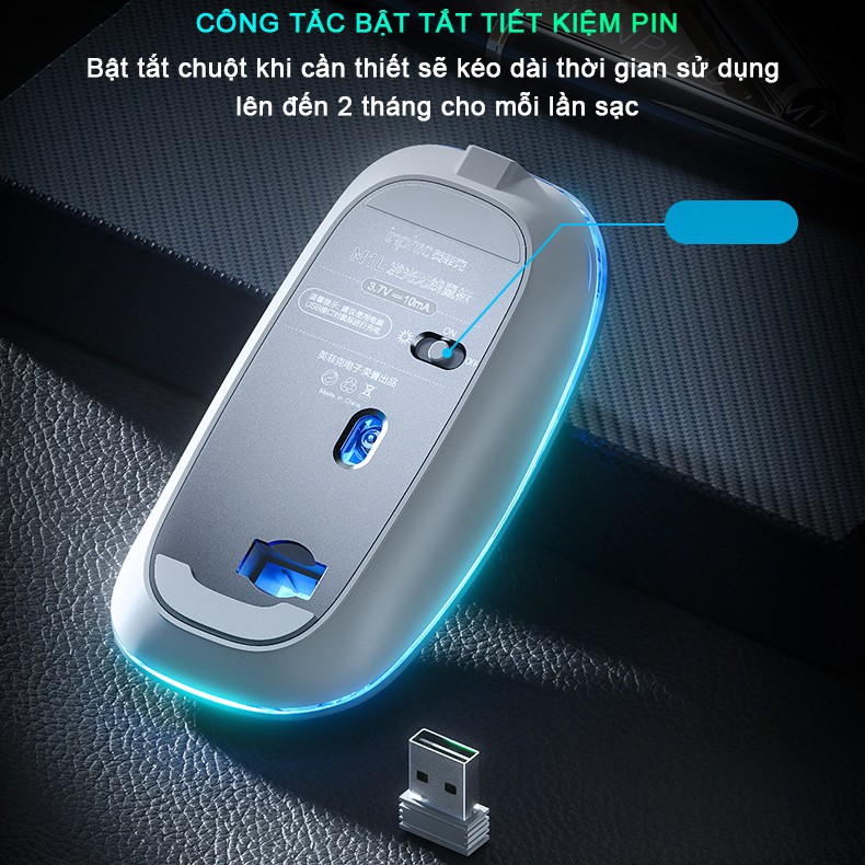 Chuột không dây wireless chính hãng Sidotech Inphic M1L silent sạc pin 1 lần dùng 8 tuần phong cách chuột Macbook