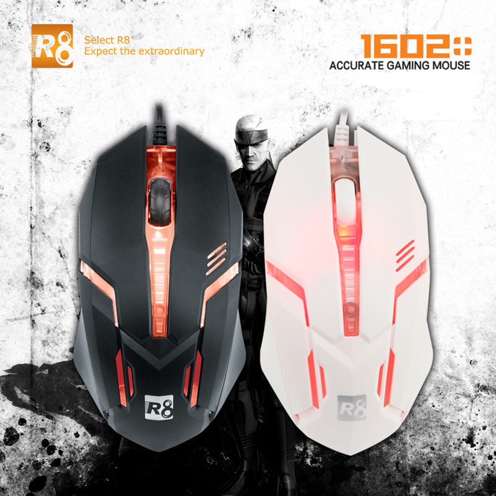 Miêu tả sản phẩm [Chuột chuyên Game R8 1602 Led đa màu]=> Màu sắc: Đen/Trắng