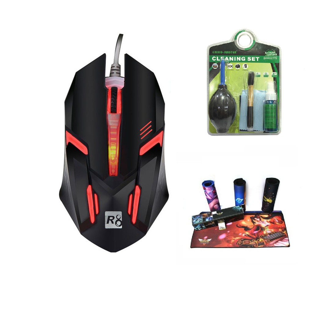 Chuột LED R8 1602 + Bộ Vệ Sinh 6 Món + Lót Chuột SIÊU LỚN S1