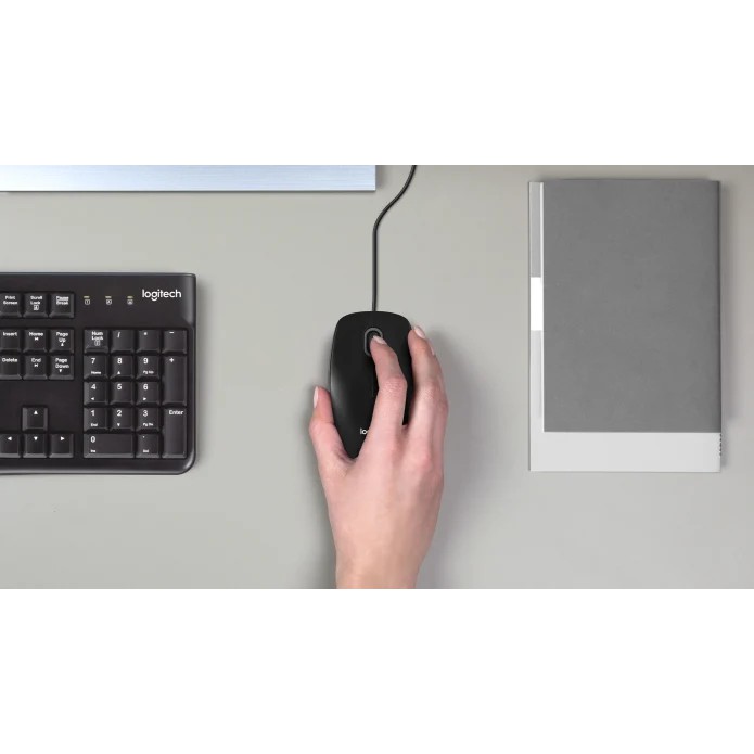 🍀 Chuột có dây Logitech B100 hoàn toàn thích hợp cho người dùng văn phòng, Shop hoặc khu vực công cộng, máy tính dùng chung và cá nhân cần 1 con chuột hoạt động ổn định, bền bỉ. Do có kết nối dây USB luôn luôn giữ đc kết nối ổn định.🍀Thiết kế thân thiện