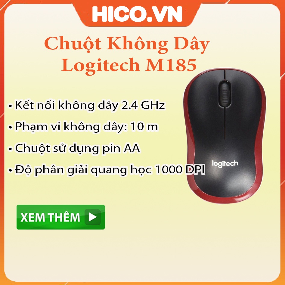 Chuột Logitech M185 Không Dây 1.000dpi , Độ Bền, Tuổi Thọ Cao, Đầu Thu Nanno Cắm Là Chạy - Bảo Hành Chính Hãng