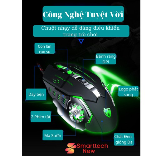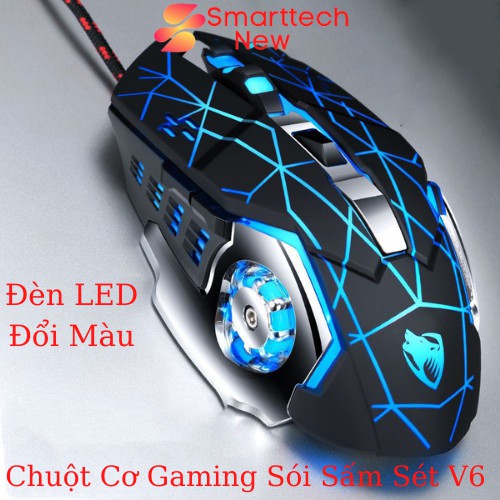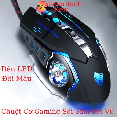 Chuột Máy Tính Chuột Cơ Gaming Có Dây V6 T - WOLF Có Đèn Led Full Led Đổi Màu Liên Tục, Siêu Nhạy, Đế Di Kim Loại