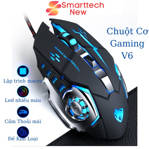 Chuột Máy Tính Chuột Cơ Gaming Có Dây V6 T - WOLF Có Đèn Led Full Led Đổi Màu Liên Tục, Siêu Nhạy, Đế Di Kim LoạiThông Tin Sản Phẩm :