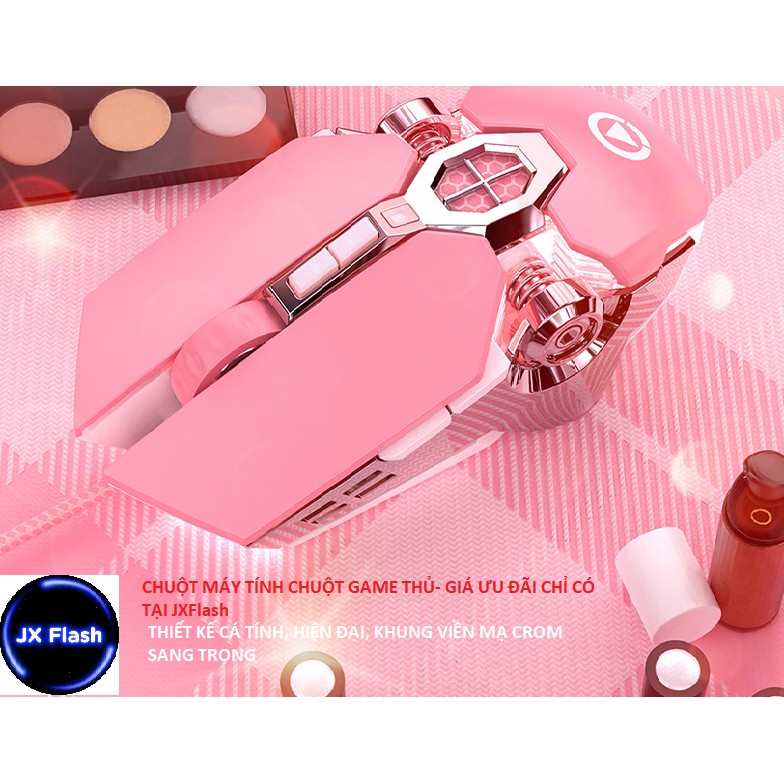 Chuột máy tính, chuột game thủ màu hồng siêu nữ tính có đèn LED đổi màu dành cho các nàng, các bạn nam mua làm quà tặng cho các gấu