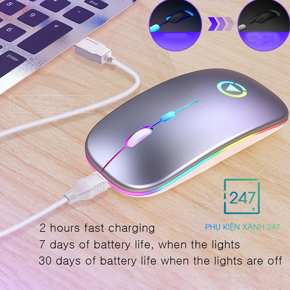 Chuột máy tính, chuột không dây đèn led, siêu chống ồn, chức năng 𝐏𝐈𝐍 𝐒𝐀̣𝐂, thiết kế mỏng nhẹ - BH 1 ĐỔI 1