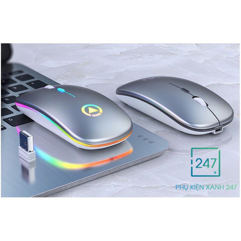 • Chuột không dây đèn led, chức năng pin sạc,siêu chống ồn, mỏng nhẹ, tiện lợi