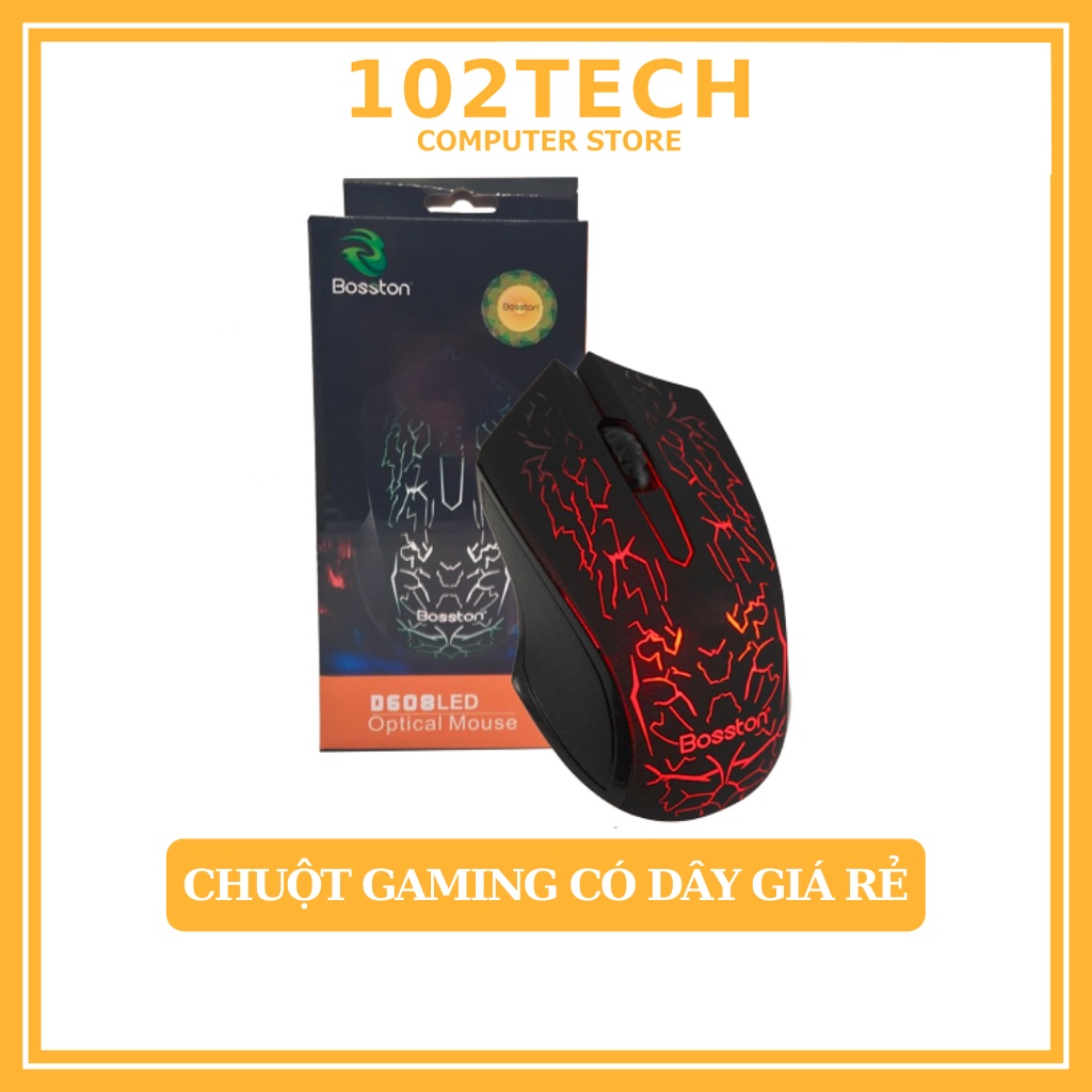 Chuột máy tính có dây giá rẻ Bosston D608, led 7 màu cực đẹp, phù hợp chơi game và văn phòng