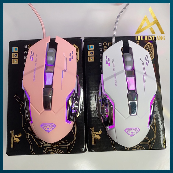 Chuột Máy Tính Có Dây Chuột Gaming LED RGB BOSSTON BS12 Màu Trắng Chuột Laptop PC Mouse Chơi Game✔️ THE BEST AMG CAM KẾT HÀNG CAO CẤP 100%