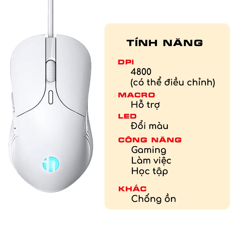 Máy tính & Laptop > Chuột & Bàn Phím > Chuột Máy Tính || Chuột máy tính có dây GGEAR Inphic PB1P Pro chống ồn silent 4800dpi cho gaming văn phòng học tậpCòn hàng