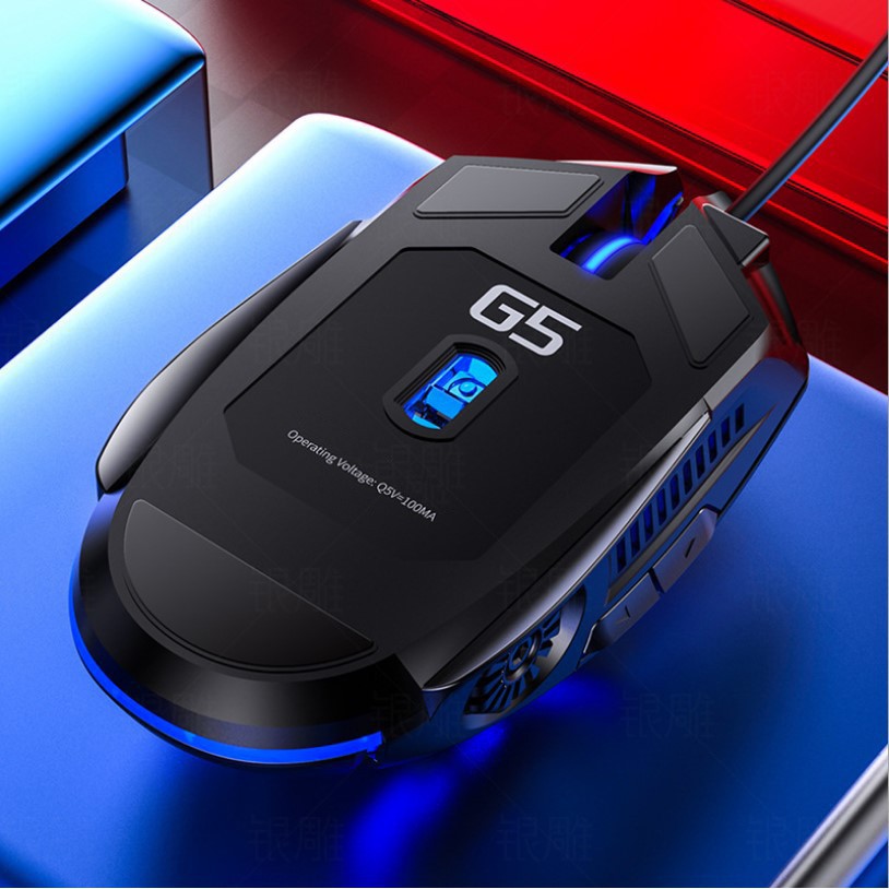 Chuột chơi game G5 có thiết kế hiện tại, màu sáng bóng. Kiểu dáng đẹp vô cùng ấn tượng