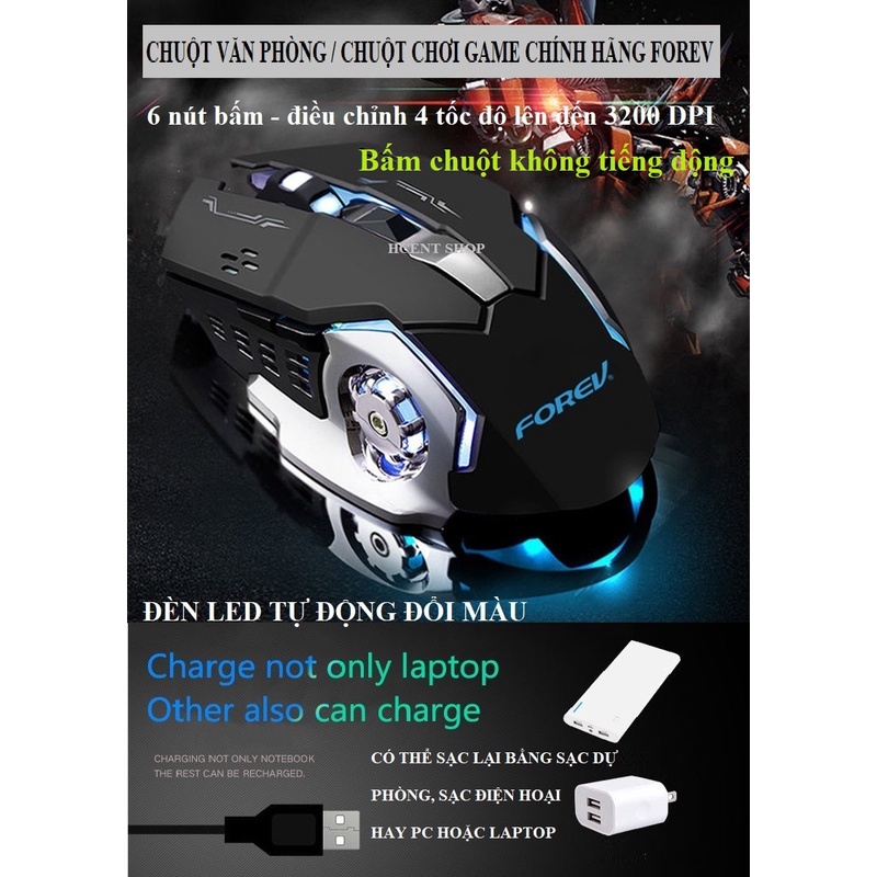 Chuột máy tính, chuột gaming, chuột không dây FOREV FV-W502 chính hãng siêu bền 6 nút 4 tốc độ 800 - 3200 DPI có thể sạc lại 2.4g chuyên dùng văn phòng hoặc chơi game. Nút bấm êm không phát ra tiếng kêu cực nhậyMÔ TẢ SẢN PHẨM: