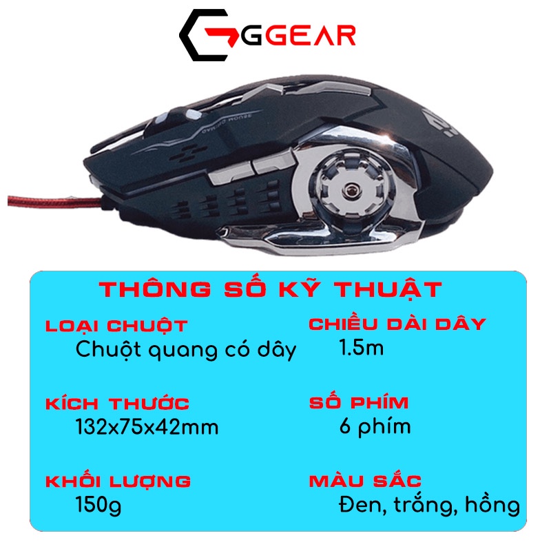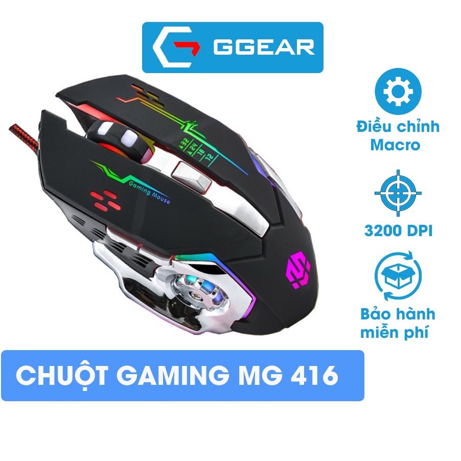 Đối với các game thủ, một dàn PC cấu hình cao luôn là trái tim trong những màn game đỉnh cao, thì chuột gaming, bàn phím và tai nghe luôn là cánh tay phải đắc lực. Do đó, để có những chiến thắng thì những game thủ luôn cần một con chuột gaming tốt. Hiện nay, chuột gaming có rất nhiều nhà sản xuất nổi tiếng như Dareu, Logitech, … với những con chuột huyền thoại như Logitech G102, Dareu em908, Dareu em901, … Có những loại chuột lớn dành cho những game thủ có bàn tay to, trong khi có những con chuột gaming có kích thước bé dành cho những gamer có bàn tay bé, hoặc để phục vụ phái nữ. MG416thuộc loại chuột nhỏ gọn giúp cho khách hàng có thể ôm trọn bàn tay. Màu sắc cũng đa dạng: Đen, đỏ, trắng, hồng, và hầu hết các loại chuột gaming thường được tích hợp LED đơn sắc, RGB. Về tiếng phát ra, có hai loại chuột cho bạn lựa chọn: Chuột có tiếng click như MG416, hoặc chuột có thiết kế chống ồn như chuột game GPB1P. Chúng ta có chuột gaming có dây và chuột gaming không dây. Chuột gaming có dây có ưu điểm tín hiệu kết nối rất tốt, không có độ trễ, đồng thời không cần pin rời hoặc sạc pin như chuột gaming không có dây, ví dụ như chuột gaming Ggear MG416. Nếu muốn gọn gàng, bạn có thể chọn cho mình một con chuột gaming không dây, bao gồm loại chuột sử dụng kết nối 2.4GHz hoặc bluetooth. ---------------- Về Ggear Chúng tôi chuyên cung cấp các phụ kiện gaming, phụ kiện máy tính, phụ kiện công nghệ như chuột máy tính, chuột gaming, chuột bluetooth, bàn phím máy tính, bàn phím gaming, tai nghe bluetooth, loa bluetooth, …