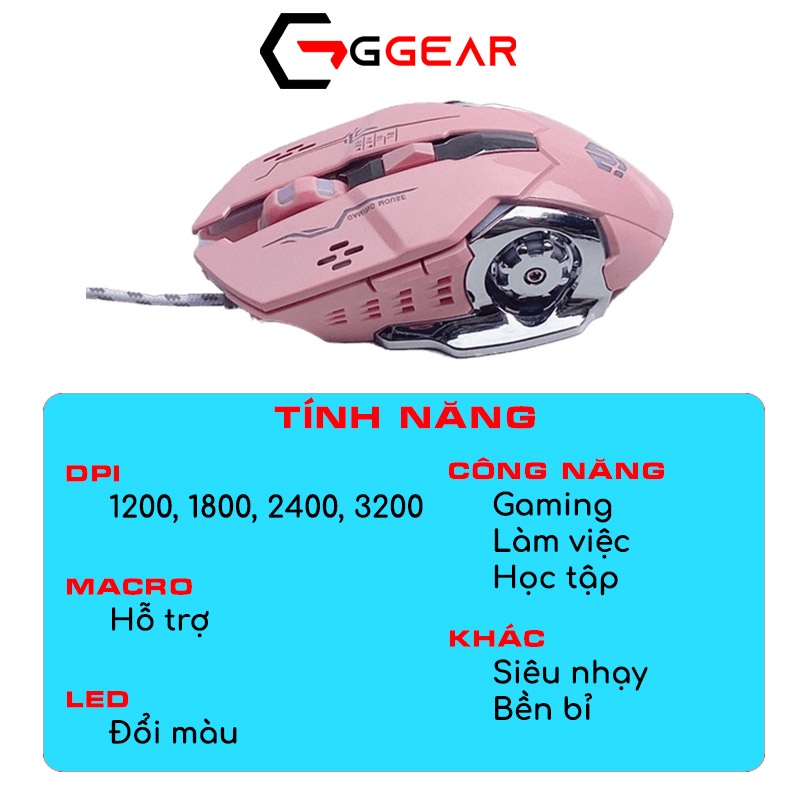 Chuột máy tính gaming GGEAR Mihun MG461 MACRO có dây 3200 dpi LED đổi màu dành cho game thủ văn phòng học tập làm việc