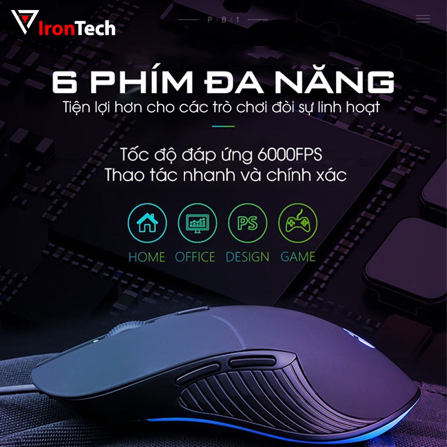 Máy tính & Laptop > Chuột & Bàn Phím > Chuột Máy Tính || Chuột máy tính gaming Iron Tech Inphic PB1P PRO 4800 DPI 6000 FPS Có dây Im lặng tắt tiếng silent cảm biến quang mượt màCòn hàng