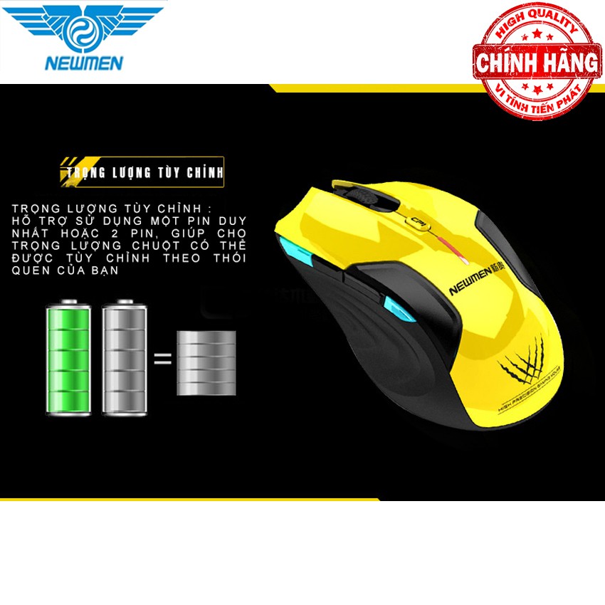 Thương hiệu Newmen nổi tiếng chất lượngChuột quang không dây Gaming Newmen E500 + , 6 nút điều khiển với đầu tiếp