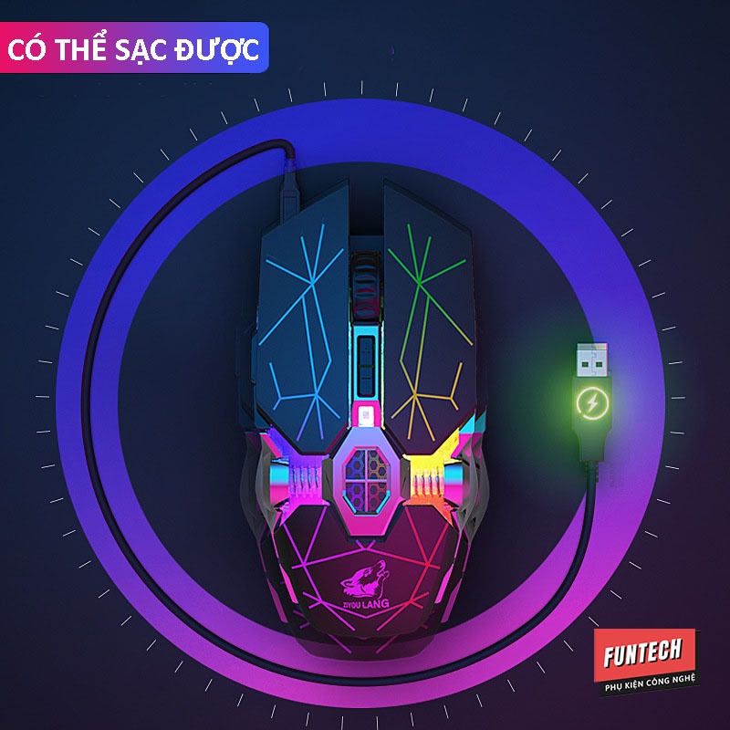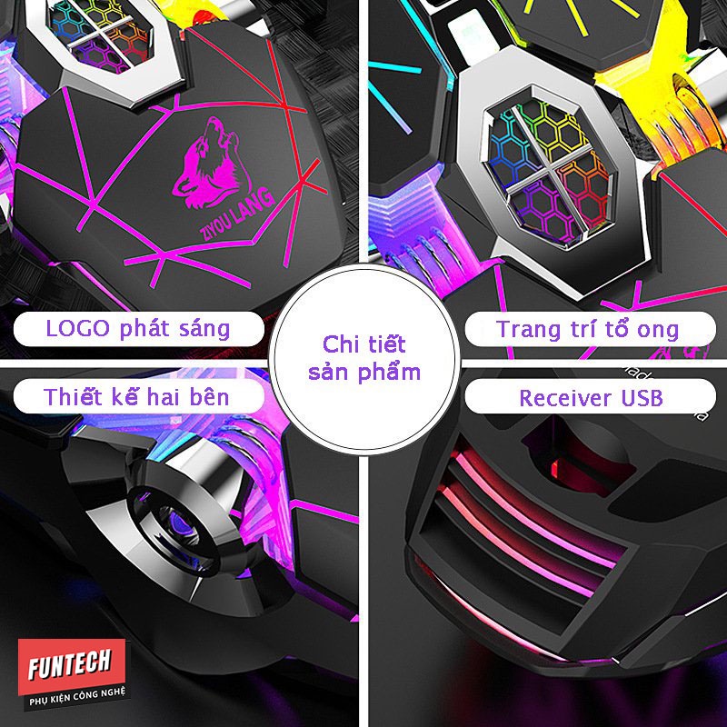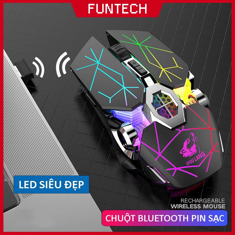 Chuột máy tính không dây gaming Wolf X13 Pro Led 7 màu siêu đẹp pin sạc đẹp giá rẻChính sách CAM KẾT từ FUNTECH: