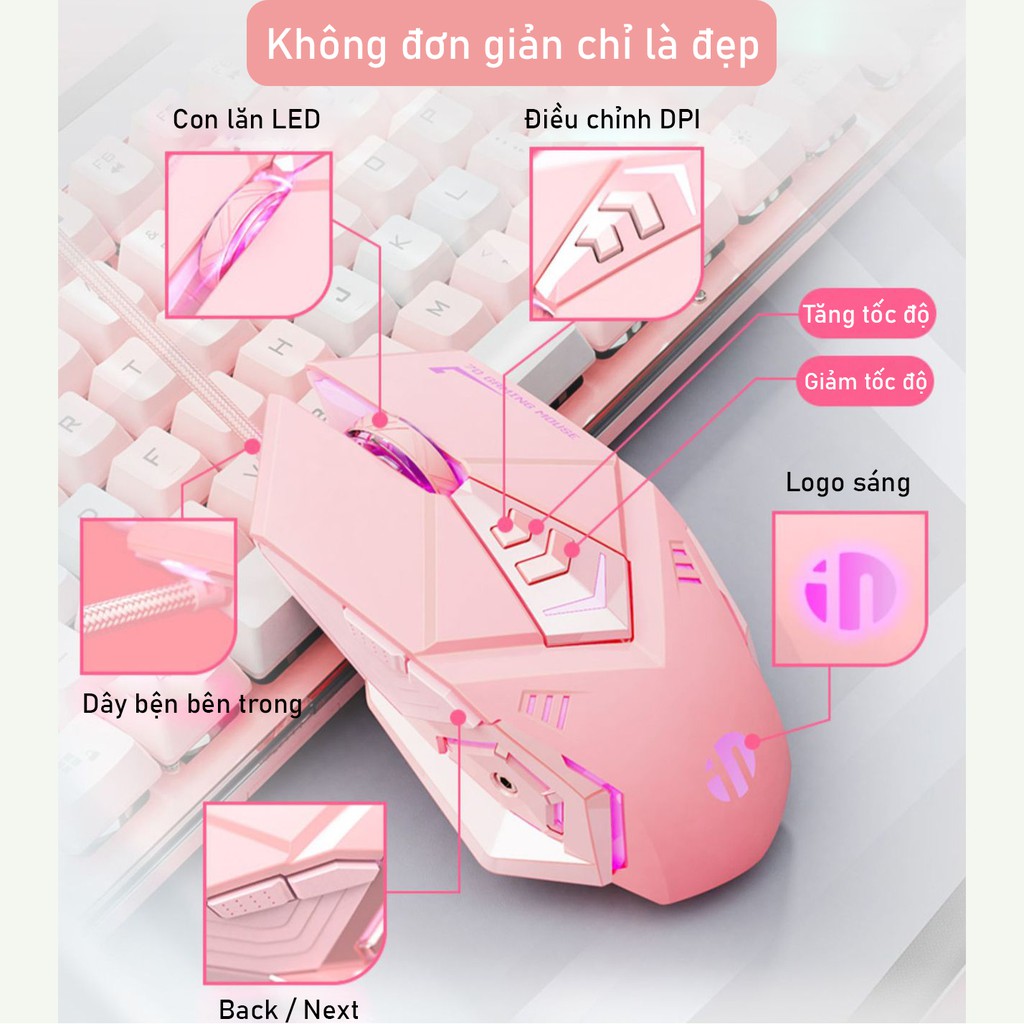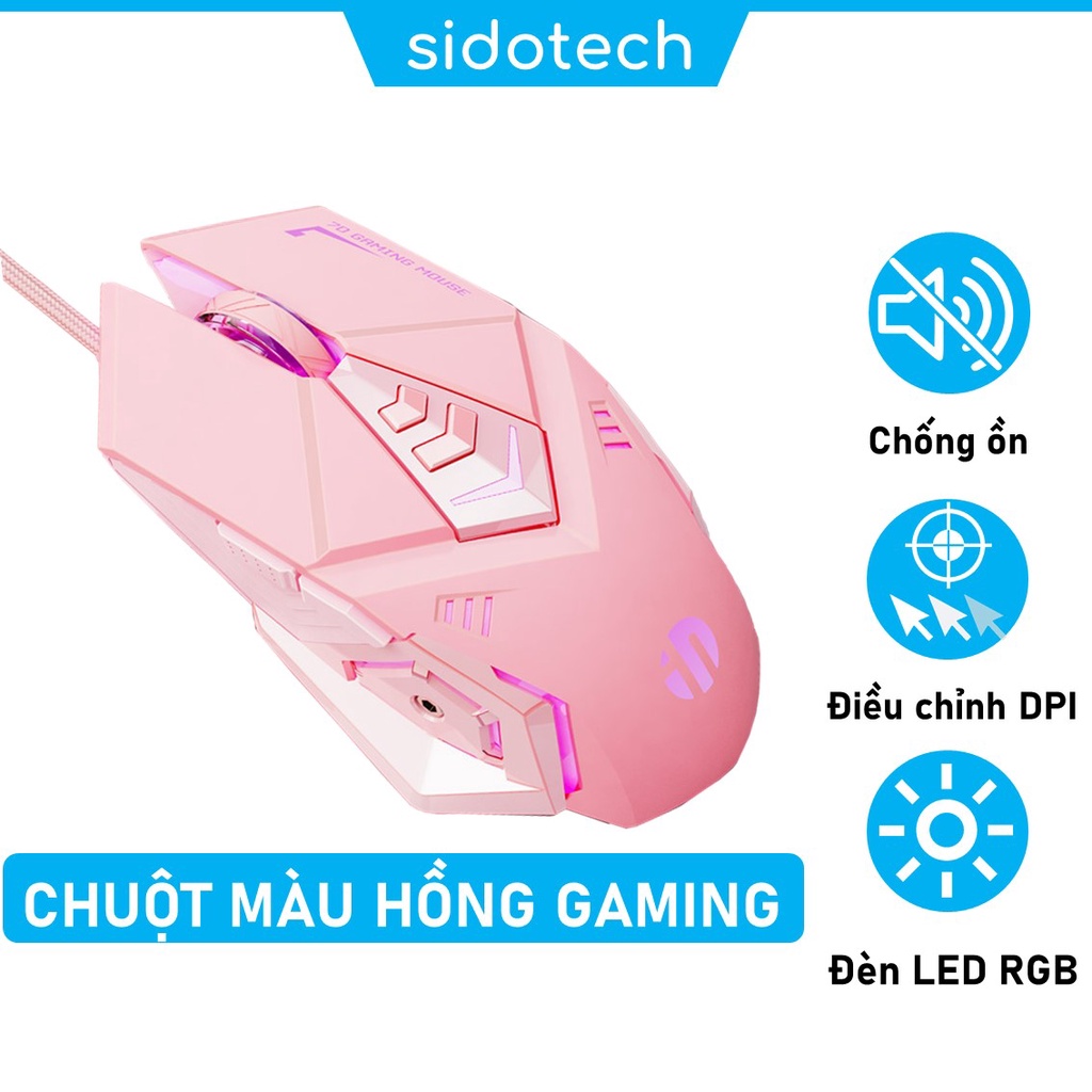 #chuot #hong #pink #may #tinh #gaming #co #day #vi #tinh #laptop #pc #silent #choi #game #thu #gia #re #combo #cong #thai #hoc #om #tay #led #sidotech #inphic #tat #am #chong #on #DPI #1200 #1600 #3000 #4000 #van #phong #p20 #ban #di #lot #chinh #hang