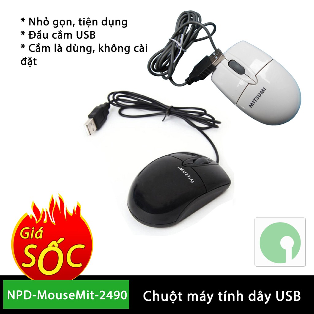Giới thiệu Chuột máy tính Mitsumi mini nhỏ gọn dây cắm USB tương thích các hệ điều hành - NPD-MouseMit-2490