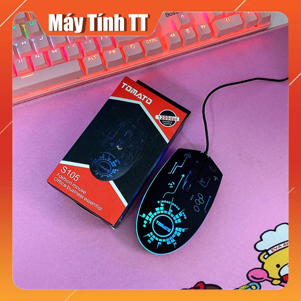 Chuột máy tính Tomato S105 led RGB , chuột quang có dây với 1200dpi bảo hành chính hãng 6 tháng - Máy Tính TT
