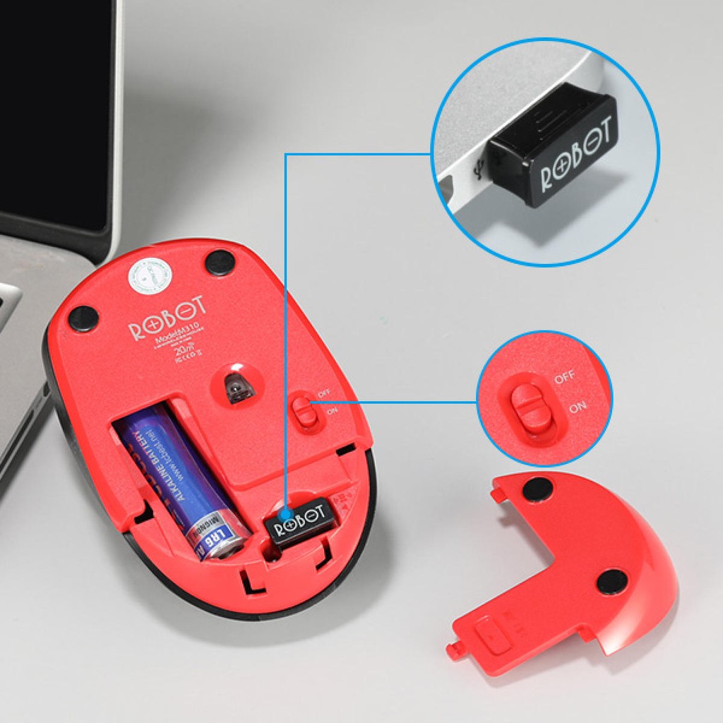 Chuột Quang Không Dây Wireless 2.4GHz ROBOT M310 - Cảm Biến Quang Học - Khoảng Cách Tín Hiệu 20m - BẢO HÀNH 1 ĐỔI 1 - TẶNG KÈM PINThương Hiệu ROBOT