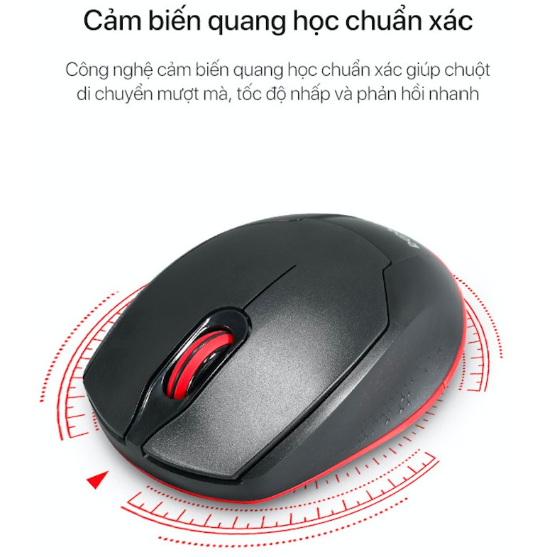 Công nghệ cảm biến quang học chuẩn xác giúp chuột di chuyển mượt mà, tốc độ nhấp và phản hồi nhanh
