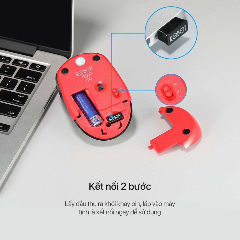 CHUỘT QUANG KHÔNG DÂY TĨNH ÂM ROBOT M310 TĨNH ÂM CẢM BIẾN QUANG HỌC KHOẢNG CÁCH TÍN HIỆU 20M - BẢO HÀNH 1 ĐỔI 1 - TẶNG KÈM PINThương Hiệu ROBOT