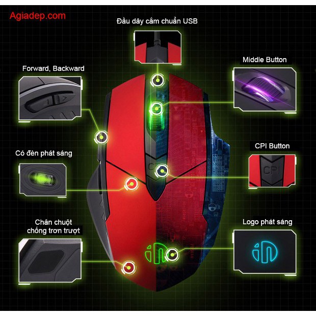 Có 6 nút đa dụng. Giúp điều khiển, thao tác chuột thuận tiện hơn.