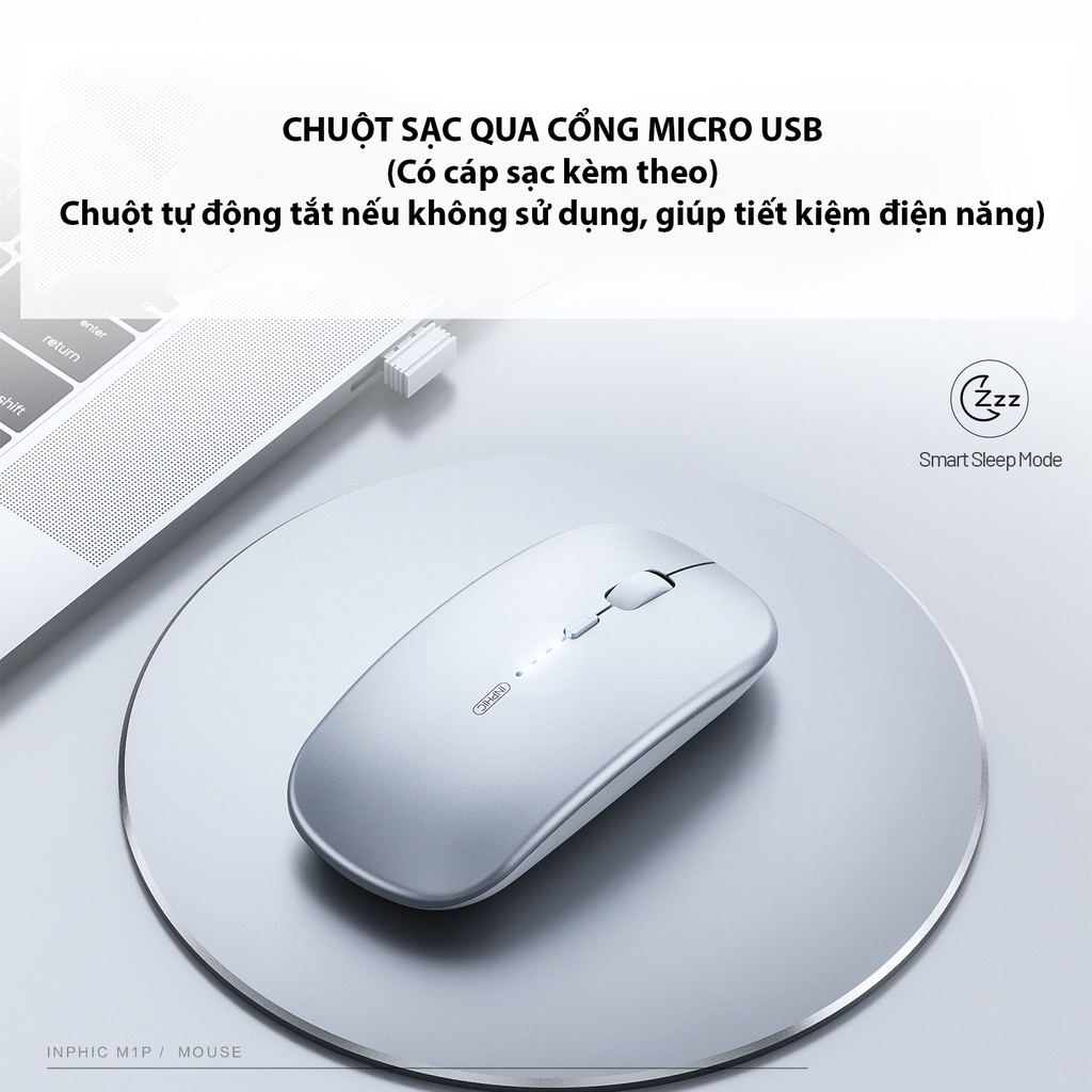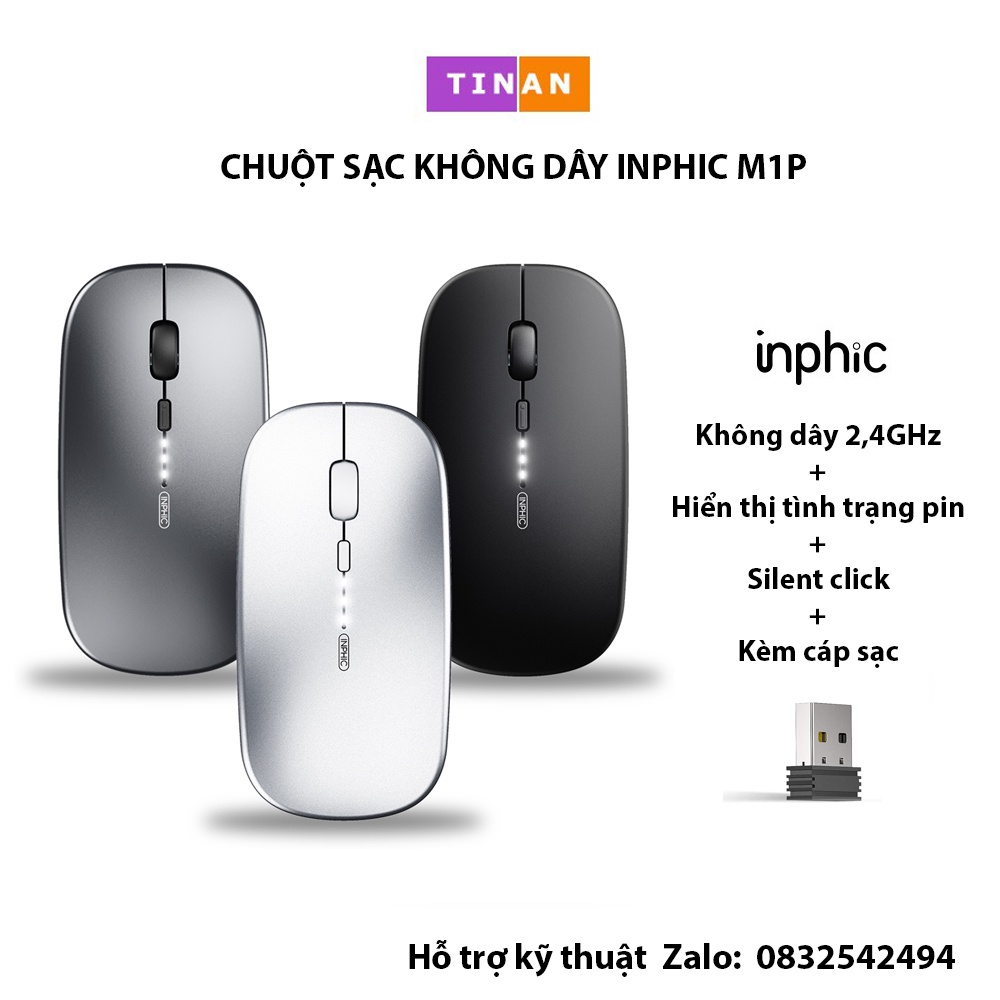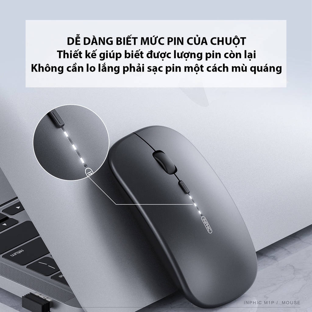 Máy tính & Laptop > Chuột & Bàn Phím > Chuột Máy Tính || Chuột Sạc Không Dây Inphic M1P, Hiển Thị Pin, Cho Máy Tính, LaptopCòn hàng