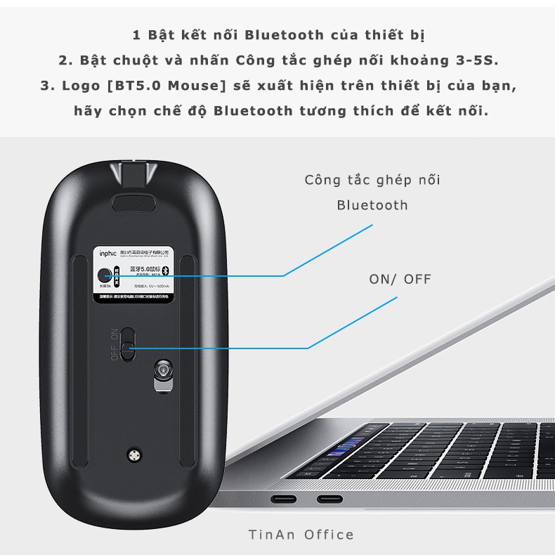 Tên sản phẩm: Chuột Sạc Không Dây Kết Nối Bluetooth 5.0 Inphic M2B Cho Máy Tính, Laptop****************