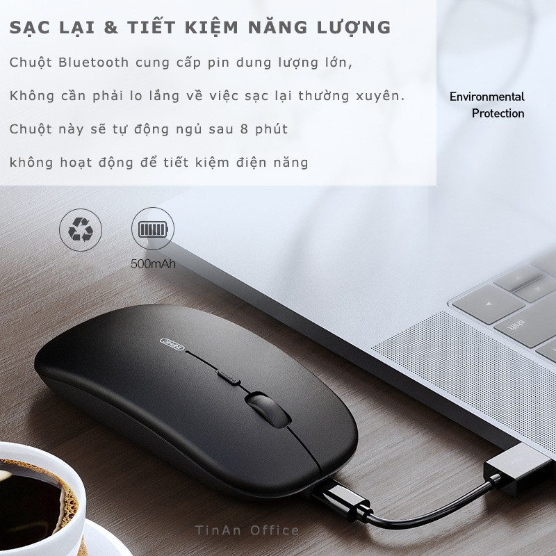 Không cần thay pin, bảo vệ môi trường. Chuột Bluetooth cung cấp pin dung lượng lớn 500mAh, nó có thể được sử dụng trong vài tháng chỉ với một lần sạc đầy, bạn không cần phải lo lắng về việc sạc lại thường xuyên. Chuột này sẽ tự động ngủ sau vài phút không hoạt động để tiết kiệm điện năng, nó có thể được đánh thức bằng cách di chuyển nhẹ nhàng.