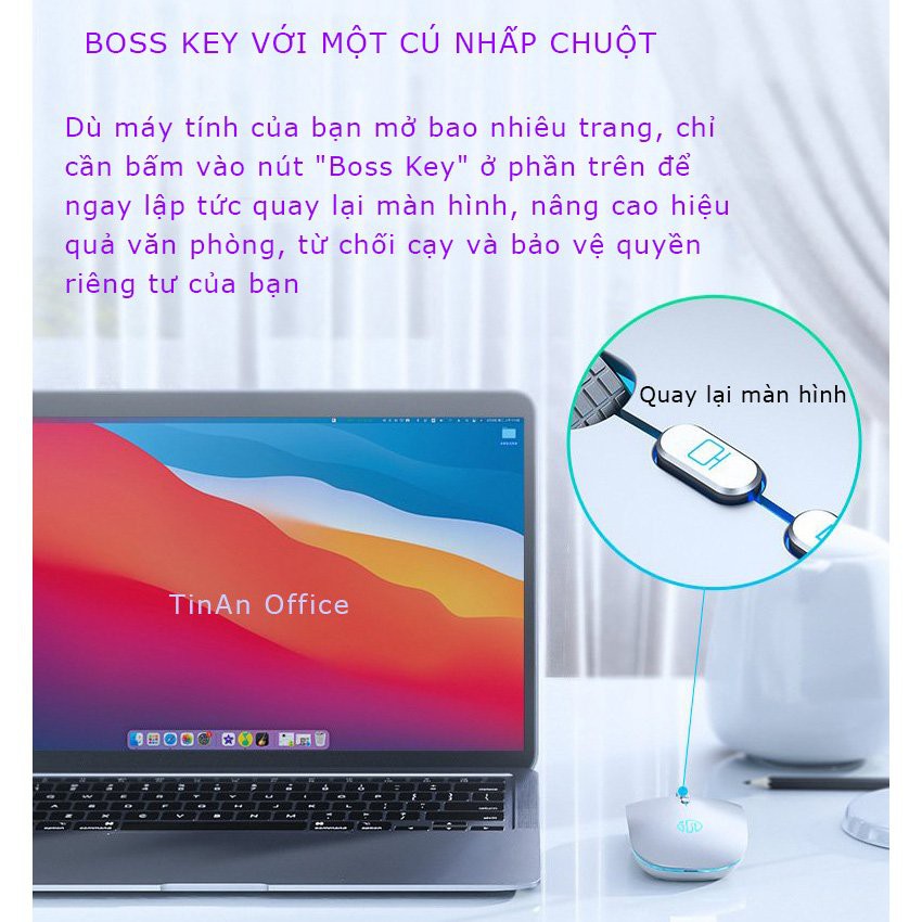 Dù máy tính của bạn mở bao nhiêu trang, chỉ cần bấm vào nút "Boss Key" ở phần trên để ngay lập tức quay lại màn hình, nâng cao hiệu quả văn phòng, từ chối cạy và bảo vệ quyền riêng tư của bạn.