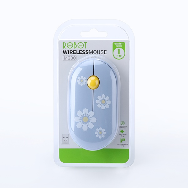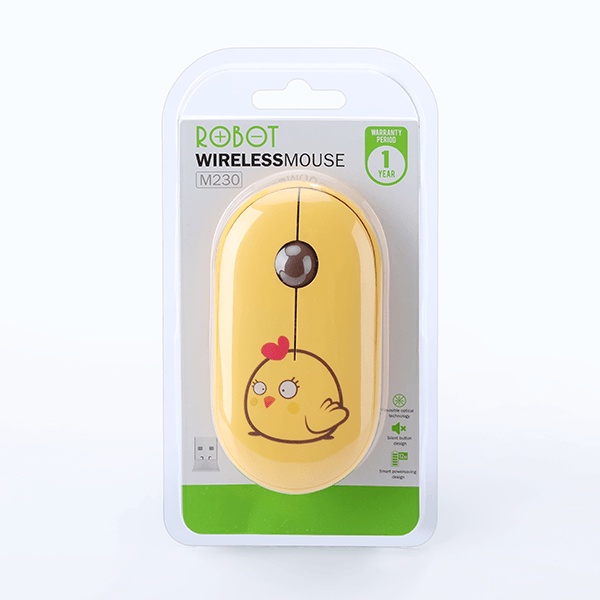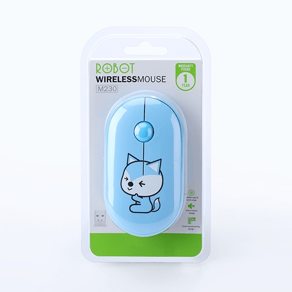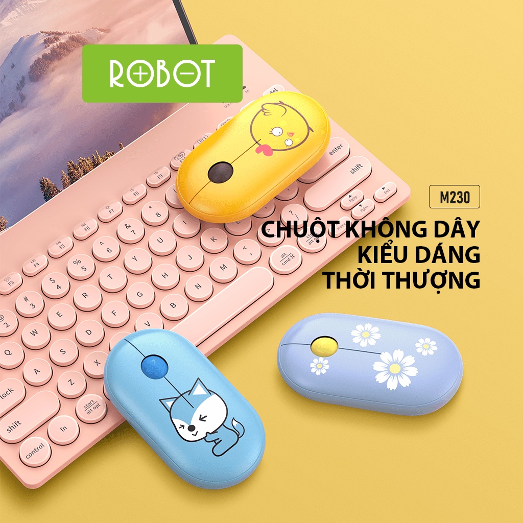 Chuột Tĩnh Âm Không Dây ROBOT M230 Họa Tiết Hoạt Hình Độ Phân Giải 1600 DPi Hàng Chính Hãng Bảo Hành 12 Tháng