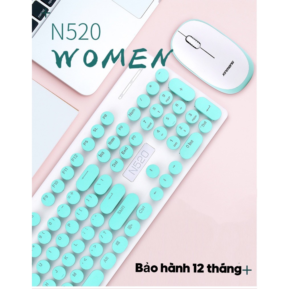 [Mã ELHAMS5 giảm 6% đơn 300K] Bộ Chuột và Bàn Phím Không Dây Siêu Đẹp N520 Mẫu Cao Cấp Màu Cực Đẹp, Phím Siêu Êm