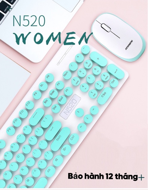 [Mã ELHAMS5 giảm 6% đơn 300K] Bộ Chuột và Bàn Phím Không Dây Văn Phòng N520 Cao Cấp Số 1 Phím Bấm Siêu Êm