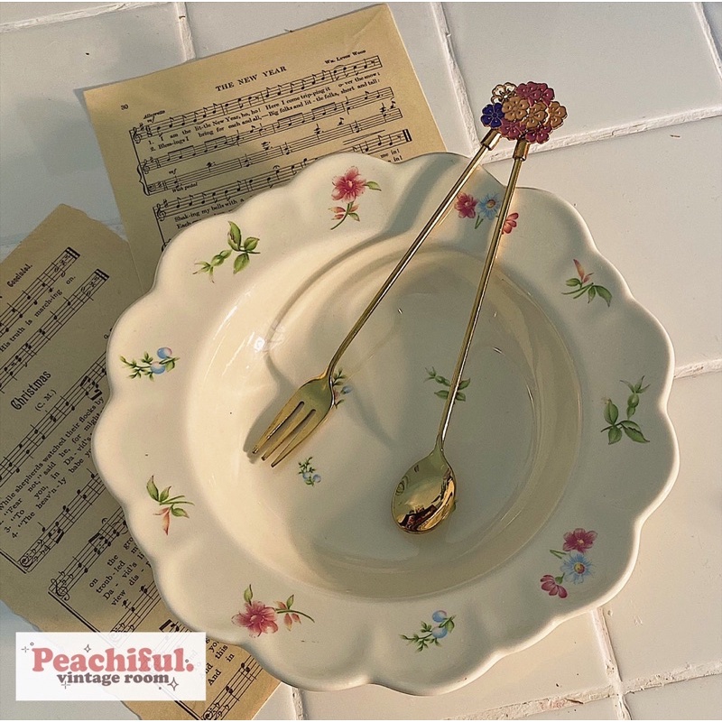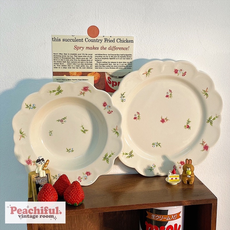 Nhà cửa & Đời sống > Bộ đồ bàn ăn > Dĩa || (Tự chụp/ Có sẵn) Đĩa và bát sâu lòng viền hoa vintageCòn hàng