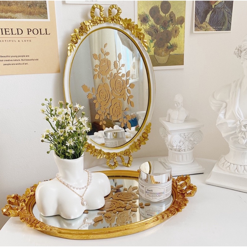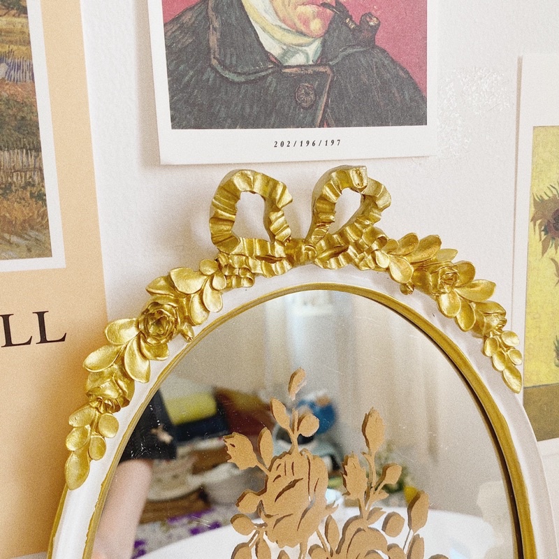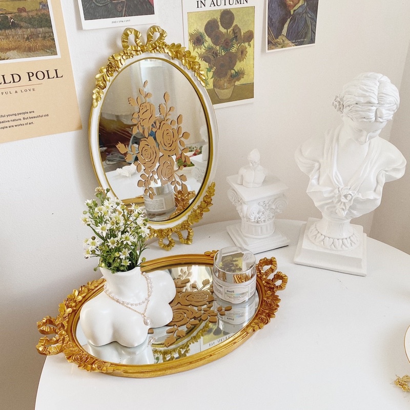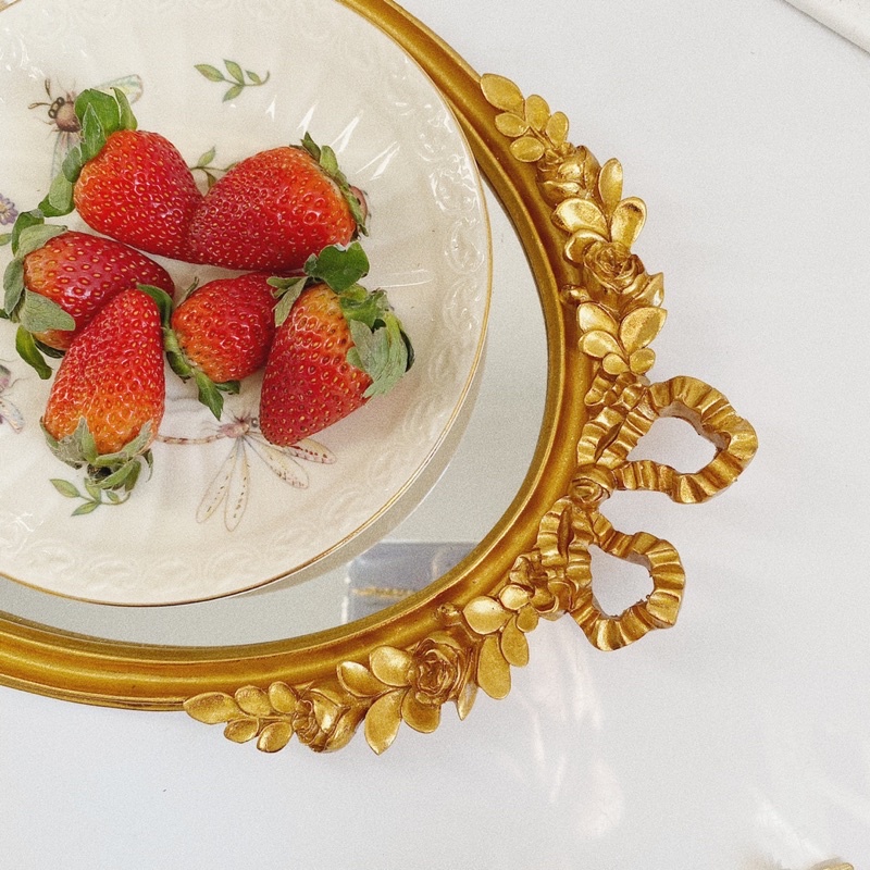( Tự chụp / Có sẵn )Mâm gương Vintage viền nơ