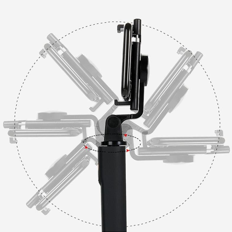 Phần kẹp điện thoại của gậy hỗ trợ xoay 360 độ giúp bạn có thể chụp đứng, chụp nghiêng đều được, và đầu kẹp hỗ trợ cho điện thoại có kích thước màn hình dưới 6 inch.