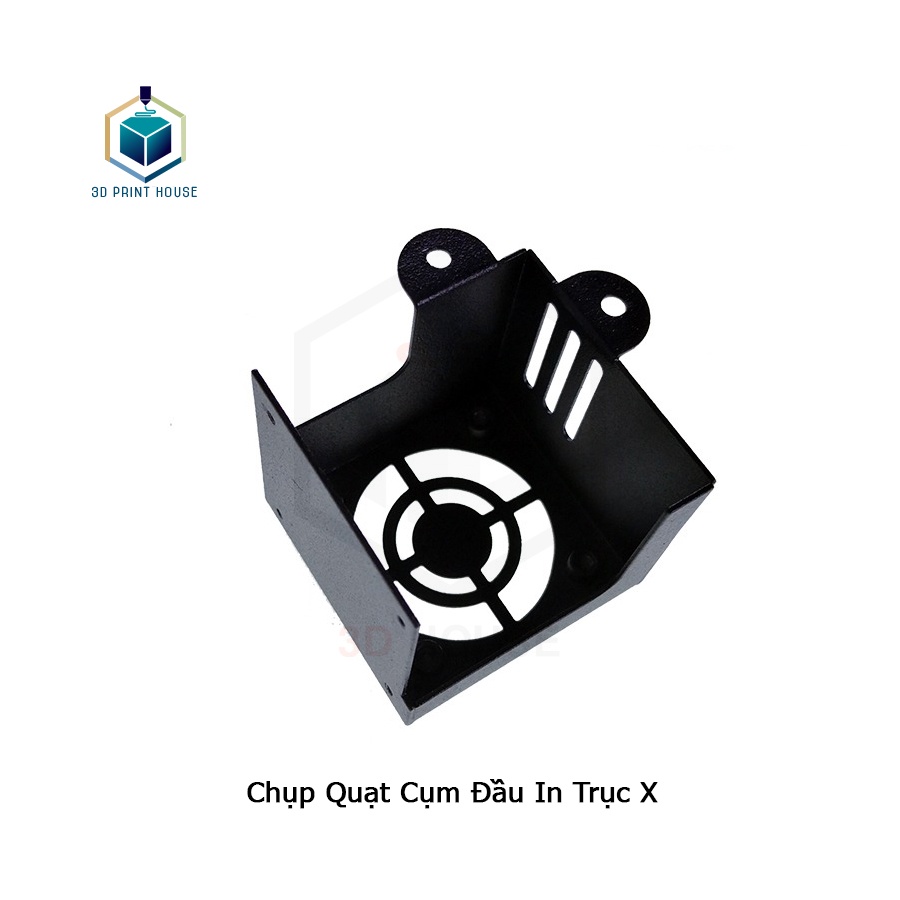 Chụp Quạt và Cụm Đầu In Máy In 3D Ender3/CR10- Được gia công CNC chính xác và sơn tĩnh điện. Chất liệu sắt tấm mỏng được dập chấn sơn tĩnh điện, có hàn sẵn 4 trục tán và taro lỗ ốc m2 để gắn quạt. Thiết kế theo gá của máy Ender 3/CR10.