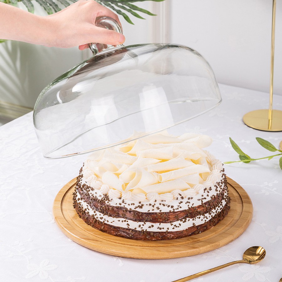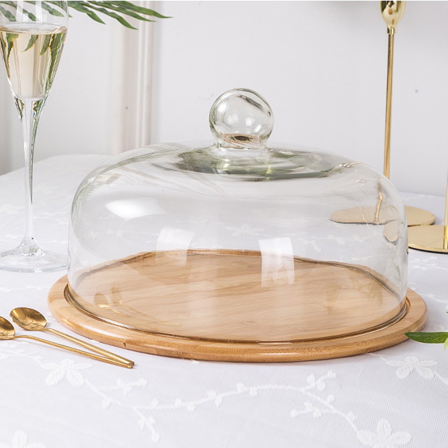 Chụp thủy tinh đế gỗ, chụp bánh thủy tinh 29cm,32cm