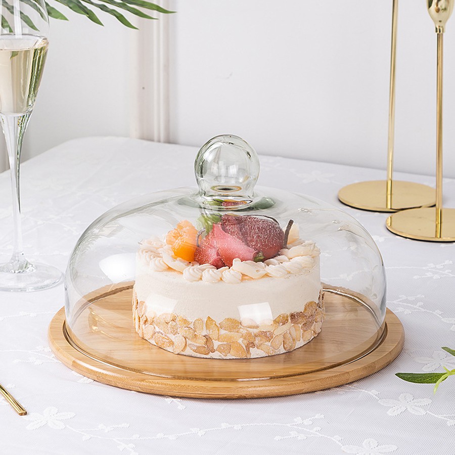 __ THÔNG TIN SẢN PHẨM:+ Chụp thủy tinh đế gỗ dùng để úp bánh gato, các loại bánh chụp còn có thể dùng để chụp thức ăn, hoa quả…