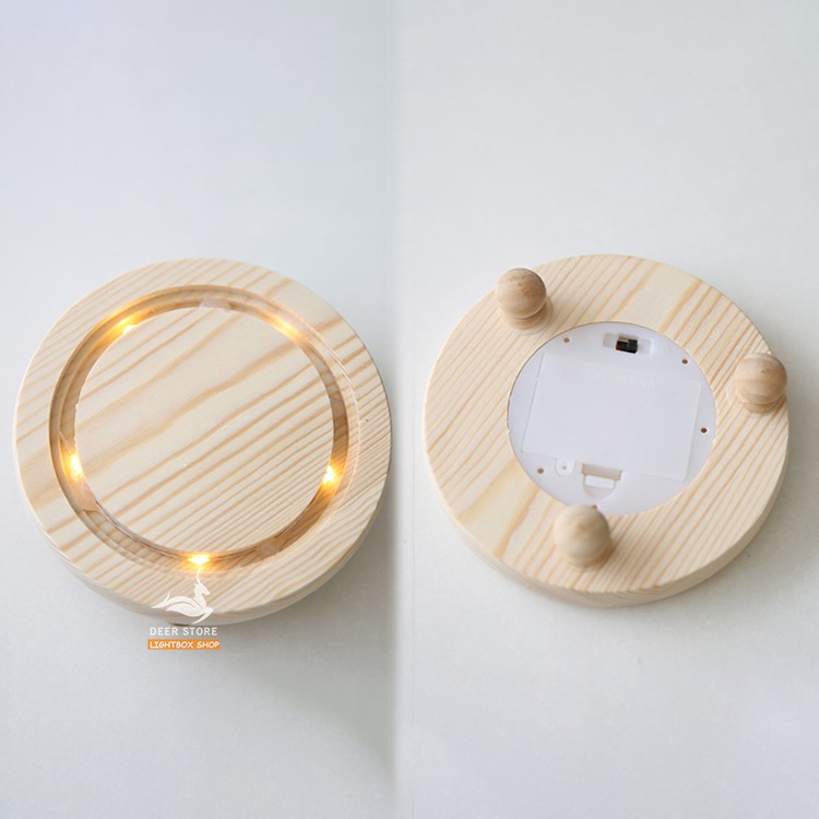 - 1 * Khay pin đèn led + led dom đóm xung quanh viên đế gỗ