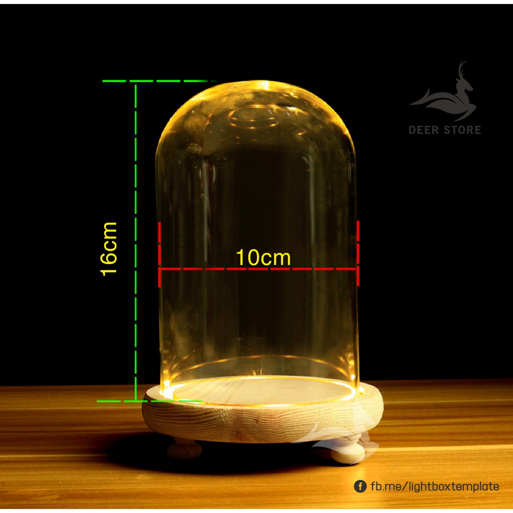 Nhà cửa & Đời sống > Trang trí nhà cửa > Bình trang trí || Chụp thủy tinh đế gỗ trang trí (Đường kính 10 cm) - Có đèn Led Tặng kèm pin.Còn hàng