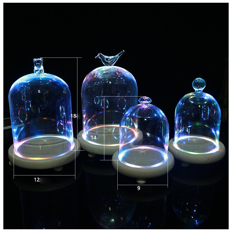 -Công dụng: Chụp thủy tinh đế gỗ 12x18 cm có gắn đèn led ( có hai loại led đổi màu và dây led vàng) sử dụng trưng bày, giới thiệu sản phẩm;Sản phẩm phù hợp dùng để bảo quản mô hình tránh bị bám bụi trong không khí, trang trí nội thất, trưng bày sản phẩm, làm đẹp cho góc làm việc của bạn.