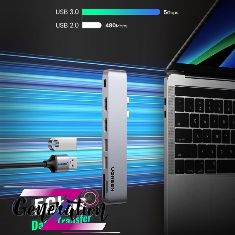 Bộ chuyển 2 USB Type-c ra 2 cổng USB3.0+2 cổng HDMI+TF/SD + USB-C - Hub USB C 7 trong 2 cho Macbook Pro/Air Ugreen 80548